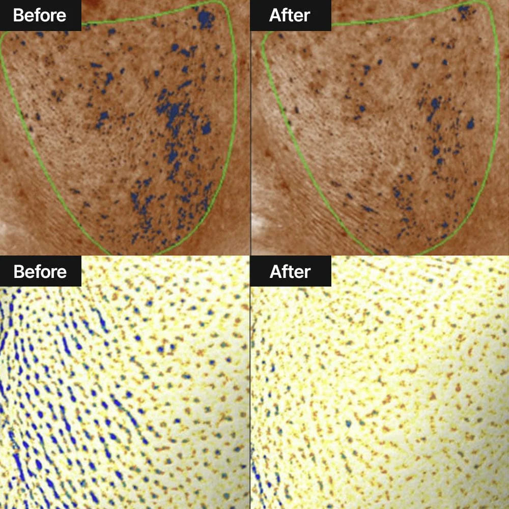 Effectively reduces the appearance of dark spots and hyperpigmentation, while improving pore size, density, and count. It helps brighten and even out uneven skin tone.